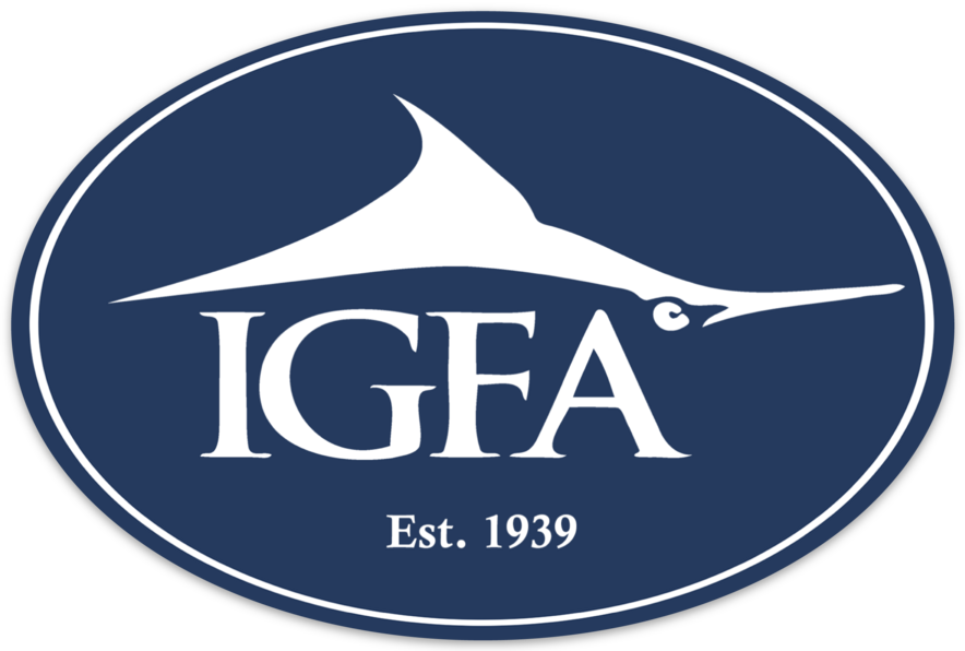 Proudly display the IGFA Marlin Logo Sticker. Measuring 6" x 4", this navy blue and white design is printed on high-quality, durable vinyl built to withstand the elements—perfect for your truck, tackle box, boat, or laptop.